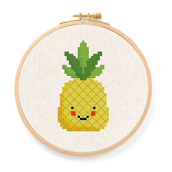 Pineapple Cross Stitch Pattern Happy Fruit Pdf Modern Cute Etsy